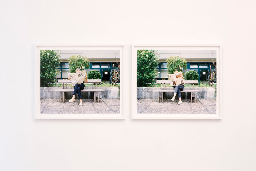 Seit mittlerweile vierzehn Jahren verbindet Peter Schreiner & Nadine Weixler eine kollaborative künstlerische Praxis, deren handwerklicher und gedanklicher Ausgangspunkt in einer Auseinandersetzung allgemein mit dem Medium der Fotografie und speziell mit Möglichkeiten und Grenzen des fotografischen Porträts zu finden ist. Seit 2020 stellt die Werkgruppe Vice versa eine zentrale Ebene im gemeinsamen Werk dar, auf der fotografische Praktiken und Ausdrucksformen mit den Mitteln des inszenierten Bildes, der Street Photography und des Porträts verhandelt werden. In den Bildpaaren, welche auf gemeinsamen Erkundungsgängen ohne vorherige Planung en passant produziert werden, gibt es keinen klar erkennbaren erzählerischen Faden. Sie bestehen aus bühnen- und laienhaften Inszenierungen, welche die beiden Protagonist:innen in einem ungeklärten Verhältnis zur Welt, aber auch zueinander zeigen. Tatsächlich scheint der fixierte Blick der/des Fotografierenden stets bei der gegenüber stehenden, liegenden, laufenden, hockenden Figur zu enden. Der darauffolgende Rollenwechsel kann vielleicht als ein, stets zum Scheitern verurteilter, Versuch beschrieben werden, in den Blick des/der Anderen einzutreten, um zu sehen was bereits gesehen worden ist. Der sinnlich-körperliche Vorgang der Mimesis wird von den beiden Protagonisten spielerisch und kämpferisch zugleich, vielleicht in Form kleiner fotografischer Duelle, bestritten. Die, auf spontan gewählten fotografischen Bühnen vorgenommenen Inszenierungen bleiben bewusst amateurhaft und geben sich dennoch nur im Blick auf ihren jeweiligen Konterpart als solche zu erkennen. Die Wiederholung dieses konzeptionellen Spiels mit den bildnerischen Grenzen der Fotografie findet in den sich wiederholenden Gesten und Posen ihre Entsprechung. Dieses fotografierte Theater läßt dabei vielleicht an ein Karussell denken, würde man sich das alles als Blicke und Bilder von, auf rotierenden Plattformen inszenierten, Schuss-Gegenschuss-Szenen vorstellen.